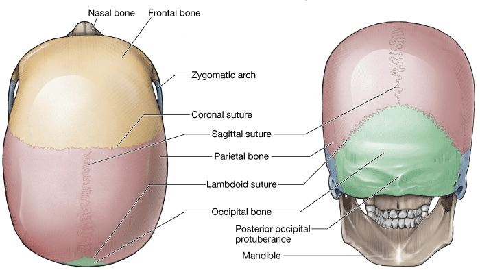 The cranial bones consist of spongy bone “sandwiched” between two layers of compact bone.