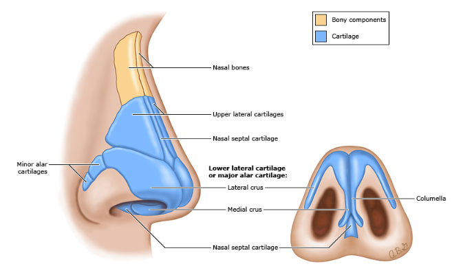 ●The nasal septum is the midline structure, dividing the nose into two nostrils and is composed of membranous, cartilaginous, and bony components (figure 1).