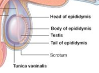 A convoluted duct that sits on the superior pole of each testis. Sperm are stored in the epididymis during the maturation process.