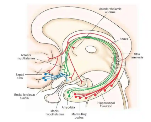 The hypothalamus (See: Gross Anatomy) is a cluster of nuclei located anterior and inferior to the thalamus.