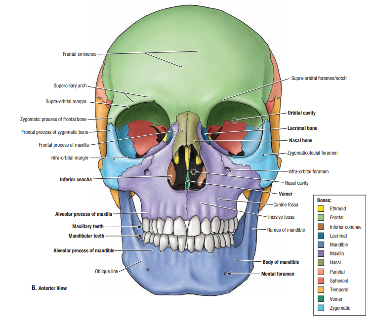 The skull consists of bones that protect the brain.