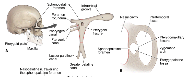 • Lateral boundary. Pterygomaxillary fissure, which communicates with the infratemporal fossa.