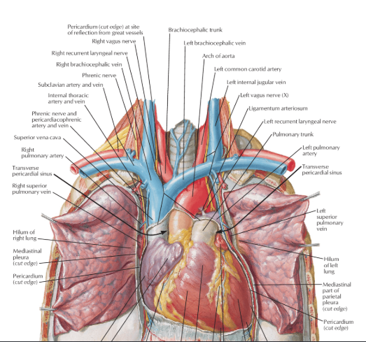 The parietal and serous layers fuse into one another in an irregular ring surrounding the great vessels.